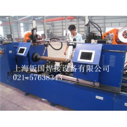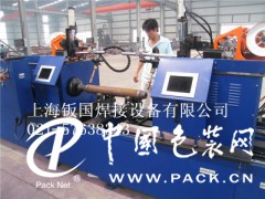 一. 公司簡介:上海鈑國焊接設(shè)備有限公司是從事焊接裝備、焊接自動化專機(jī)的研究開發(fā)和生產(chǎn)制造的專業(yè)性企業(yè)。多年來,公司開發(fā)研制的焊接裝備和焊接自動化專機(jī),技術(shù)先進(jìn)、實(shí)用性強(qiáng)、可靠性好,被廣泛應(yīng)用于儀器儀表、管道、鋼結(jié)構(gòu)、汽車制造、壓力容器、機(jī)械制造、電力工程等行業(yè)。雙頭CO2臥式旋轉(zhuǎn)焊接專機(jī)產(chǎn)品,是為鋼結(jié)構(gòu)行業(yè)開發(fā)的焊接設(shè)備。設(shè)備主要適用于網(wǎng)架桿件和封頭工件的焊接加工。設(shè)備焊接速度快、試?yán)瓘?qiáng)度高、外觀成形好。二. 設(shè)備適用工件規(guī)格及技術(shù)要求: 1. 工件材料;碳鋼。 2. 工件直徑:φ48~φ219mm。 3. 工件長度: 500~5000mm。 4. 工件壁厚: 2.75~14.0mm。 5. 焊接方法:CO2雙頭套接焊。 6. 焊炬頭數(shù):2頭。 7. 焊縫軌跡:工件旋轉(zhuǎn),焊炬固定。 8. 焊縫要求:焊縫均勻、整齊。 9.工件要求:(1)焊前接頭蓋需在連桿兩端工件端口預(yù)先點(diǎn)焊固定。(2)工件端口須平整,且與筒身中心垂直。(3)兩拼縫端口須*保*等圓,且*保*與筒身中心的同心度。三. 設(shè)備的基本構(gòu)成:設(shè)備由臥式矩型管機(jī)架、回轉(zhuǎn)工作臺、焊接機(jī)頭支撐架(2套)、調(diào)整機(jī)構(gòu)(2套)、滾輪托架(2套)、尾部頂緊機(jī)構(gòu)、控制系統(tǒng)、水冷焊炬(2把)、焊接電源(2臺,)、送絲裝置(2臺,)、冷卻水箱(2套)、工裝夾具、防弧光面板、纜線拖鏈臺等組成。四. 設(shè)備主要技術(shù)參數(shù): 1. 設(shè)備長度:7000mm。 2. 設(shè)備寬度:700mm。 3. 操作高度:760mm。 4. 工件*大焊接長度:5000mm。 5. 焊接電源: KR—500 CO2氣體保護(hù)焊,負(fù)載率:60%。(國產(chǎn)) 6. 焊接電流:500A(*大焊接電流)。 7. 主軸轉(zhuǎn)速:0~12轉(zhuǎn)/分(變頻無極調(diào)速)。 8. 焊接圈數(shù):1~5圈(自動控制,可設(shè)定)。 9. 送絲機(jī)速度:≥15米/分。 10.送絲直徑:φ1.2,φ1.6mm。 11.操作系統(tǒng)采用進(jìn)口可編程序控制器(PLC)控制,實(shí)現(xiàn)焊接過程自動順序控制。操作分手動和自動兩種操作功能