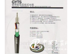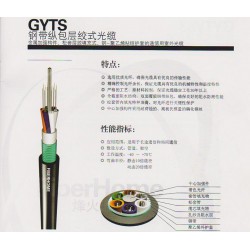 鋼帶縱包層絞式光纜(GYTS) 金屬加強構(gòu)件、松套層絞填充式、鋼-聚乙烯粘結(jié)護套的通信用室外光纜 特點:·全截面阻水結(jié)構(gòu),雙面覆膜鋼帶縱包,確保良好的阻水防潮性能·松套管內(nèi)填充特種油膏,對光纖進行關(guān)鍵性保護·磷化鋼絲中心加強構(gòu)件模量高、耐腐蝕·產(chǎn)品使用壽命30年以上性能指標:·應用范圍:適用于長途通信和局間通信·敷設(shè)方式:架空、管道·工作溫度:-40~+70℃·彎曲半徑:靜態(tài)10倍纜徑 動態(tài)20倍纜徑