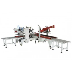 第四步:封好箱后自動打包,至此本流水線包裝操作完成。如在第*步與第二步間加入產(chǎn)品自動裝箱,屆時本包裝流水線將可以完全實現(xiàn)無人化全自動從開箱到打包好。