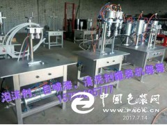 聚氨酯泡沫填縫劑專業(yè)灌裝機(jī)(15732695777 歡迎咨詢 鑫達(dá)氣霧劑灌裝機(jī)),在設(shè)計(jì)方面將白料灌裝機(jī)、黑料灌裝機(jī)、半自動(dòng)封口機(jī)、二甲醚灌裝機(jī)、丙丁烷灌裝機(jī)(含兩臺(tái)增壓泵)結(jié)合在一個(gè)工作臺(tái)