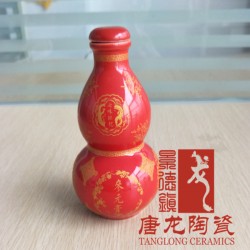 此款紅釉陶瓷葫蘆瓶是用來裝枸杞膏的瓷瓶,由寧夏中寧枸杞科技委托我廠特別定制。中寧枸杞是寧夏五寶之一,用枸杞制作成的膏滋廣受大家喜愛。好的產品需要好的包裝,所以客戶想到用陶瓷來做包裝。一開始在網上搜到陶瓷葫蘆瓶定制,找到我廠工作人員進行咨詢。前期經過溝通和了解后,客戶確定用高溫紅釉的效果來襯托紅杞膏,圖案使用金色花紋來點綴。因為容量需要實物來確定,先進行開模打樣確定。樣品做出來后,此款紅釉陶瓷葫蘆瓶水容量是200ml,客戶試裝后對容量和質量都挺滿意,開始大批量生產。