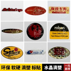 工藝:PVC或PP或不干膠高清印刷、刀版沖形狀、表面水晶滴塑處理。
