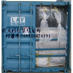 集裝箱內(nèi)襯袋又稱干包裝。 適用于大宗有流動(dòng)性的固體散裝顆粒狀、粉末狀產(chǎn)品的集裝箱運(yùn)輸。