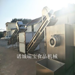 1、凍肉破碎機工作完成的是凍肉,可直接放入凍肉絞肉機,因此節(jié)省了工序,提高了生產(chǎn)效率。