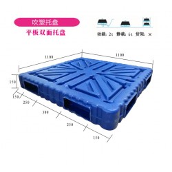 1111雙面吹塑塑料托盤(pán)尺寸是1.1米*1.1米*0.15米。