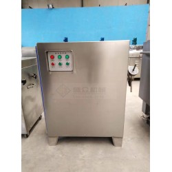 全自動凍肉絞肉機(jī)商用大功率凍肉絞肉機(jī)是肉制品生產(chǎn)行業(yè)中通用性高、使用范圍廣的一種肉食加工設(shè)備。它是依靠螺桿將料斗箱中的原料肉推到預(yù)切板處,通過螺桿的旋轉(zhuǎn)擠壓使孔板與絞刀產(chǎn)生相對質(zhì)運(yùn)轉(zhuǎn),從而將原料肉切成顆粒形狀,確保了肉餡的均勻性。通過孔板的不同組合可達(dá)到理想的要求的不同肉餡。優(yōu)點(diǎn):通用性好、適用范圍廣、生產(chǎn)效率高;