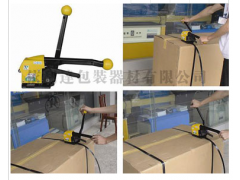 平洲鋼帶打包機(jī),佛山木箱鐵皮捆包機(jī),接頭無需鐵扣