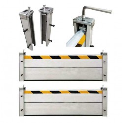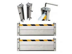 邊立柱截面尺寸為90*60 mm;中立柱截面尺寸為90*100 mm;三角支架支撐件截面尺寸為50*50 mm;防水高度依據(jù)防汛擋水板每片標(biāo)準(zhǔn)高度結(jié)合用戶所在地歷史潮位或用戶要求來設(shè)定;防汛擋水板寬度依據(jù)安裝位置實(shí)際門洞寬度設(shè)定;一般門洞寬度在3500mm以上時(shí)中間須均 衡設(shè)置中立柱及三角支架,具體詳見標(biāo)準(zhǔn)規(guī)定。