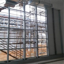 7.安裝橫向卡檔龍骨:依據(jù)設(shè)計(jì)要求,隔墻高度大于3m時(shí)應(yīng)加橫向卡檔龍骨,采用抽芯鉚釘或螺栓固定。