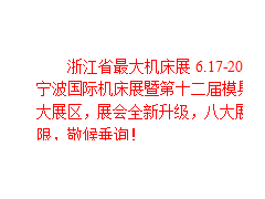 浙江省*大機(jī)床展6.17-20震撼來(lái)襲!金諾機(jī)床展與寧波市模具行業(yè)協(xié)會(huì)聯(lián)手打造2016寧波國(guó)際機(jī)床展暨第十二屆模具之都博覽會(huì)!設(shè)置機(jī)床、工模具、智能制造、工業(yè)機(jī)器人四大展區(qū),展會(huì)全新升級(jí),八大展館全面開放,將亮點(diǎn)展出智能化、柔性化智能裝備,商機(jī)無(wú)限,敬候垂詢!