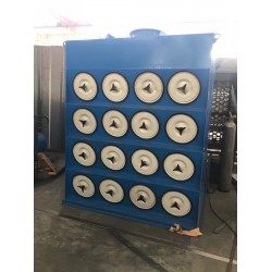 含塵氣體經(jīng)過入口進入機組,粉塵被阻留在濾筒的表面而被收集,潔凈的氣體通過濾筒 進入引風機,經(jīng)消音室由頂部出氣口排出。