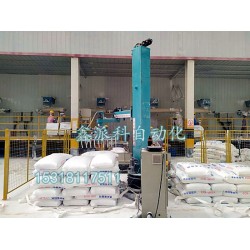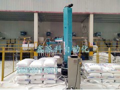 立柱機(jī)器人碼垛機(jī)按照設(shè)定程序?qū)ξ锲愤M(jìn)行抓取碼垛,一垛碼完后,機(jī)器人自動(dòng)重復(fù)以上抓取動(dòng)作,碼放另一邊,同時(shí)提醒現(xiàn)場(chǎng)操作人員碼放完成,人工用叉車運(yùn)走。