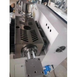 實(shí)驗(yàn)室通常以這款為主;占地直線長(zhǎng)度2.5米以上;優(yōu)點(diǎn):混煉塑化佳;(通常用一套機(jī)組由主機(jī)一臺(tái),水槽一臺(tái),吹干機(jī)一臺(tái),切粒機(jī)一臺(tái)組成; 擠出成型機(jī)組由擠出機(jī)一臺(tái),冷卻水槽一臺(tái),牽引一臺(tái),收卷等組成)