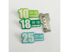 滴膠徽章一般也會叫做印刷徽章,因?yàn)榛照轮谱鞯暮笠坏拦ば蚴窃诨照碌谋砻婕由弦粚油该鞅Wo(hù)樹脂;這樣的做法,除了可以讓整個(gè)印刷的畫面增加晶瑩透亮的質(zhì)感外,透明的樹脂還可以對畫面起到一定保護(hù)的作用。