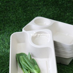 850ml沙拉托盤 原木色外觀,單個尺寸225*165*45mm,重量為27g,可搭配PET蓋子。適用于餐飲行業(yè)外賣配送,學校食堂餐盤 包裝方式為50個/包,500個/箱。采用可完全回收循環(huán)使用的植物纖維漿(木、竹、甘蔗漿等)或廢棄紙品再生漿作為基料,采用紙漿模塑生產(chǎn)工藝制造而成,安全無害易回收利用,可堆肥可被自然降解,不會造成環(huán)境污染。