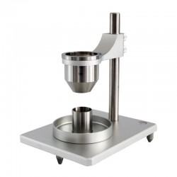 銅金粉松裝密度計(jì)、銅金粉松裝密度儀、銅金粉松裝密度測(cè)試儀的測(cè)試方法為標(biāo)準(zhǔn)漏斗法,該儀器一般配有2.5mm跟5.0mm兩個(gè)標(biāo)準(zhǔn)漏斗,可以用于測(cè)試金屬粉末和非金屬粉末的霍爾流速和松裝密度。2.5mm孔徑的漏斗用于測(cè)量粉末的流速,而5.0mm孔徑的漏斗則是用于測(cè)量粉末的松裝密度。故銅金粉松裝密度儀也可以稱作是銅金粉霍爾流速計(jì)。