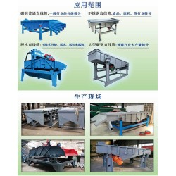 直線篩是一種多功能篩分設(shè)備,這種直線振動篩不但可以應(yīng)用在各個行業(yè)中。還具有產(chǎn)量大,精度高的特點(diǎn),主要是根據(jù)您需要篩分的物料來定制會更合理。同時也會輕松的達(dá)到您篩分的目的。由振動電機(jī)、篩箱、篩網(wǎng)、傳振體、減振裝置組成。適用于粒度在0.074-5mm、含水量小于70%、無粘性的各種干式粉狀物料的篩分,**給料粒度不大于10mm。通過多層篩網(wǎng)實現(xiàn)2-6種不同規(guī)格物料的分*作業(yè),往往配合其他機(jī)械設(shè)備、如輸送機(jī)、提升機(jī)、破碎機(jī)等,完成整個流水線的自動化作業(yè)。具有耗能低、產(chǎn)量高、結(jié)構(gòu)簡單、易維修、全封閉結(jié)構(gòu),無粉塵溢散。